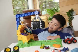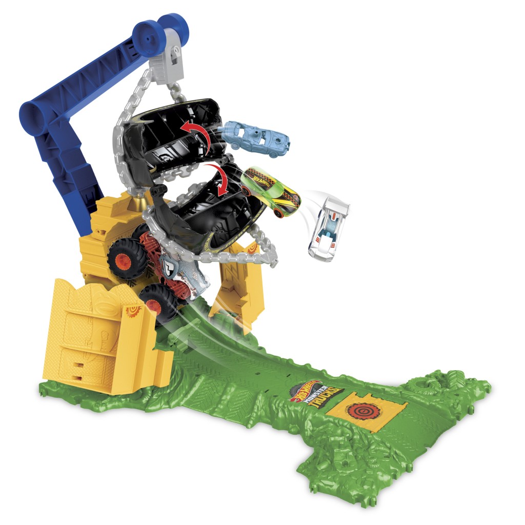 - V súprave Hot Wheels® Monster Trucks Arena: Rhinomite Challenge môžu deti pomocou priloženého Monster Trucku Rhinomite rozbíjať skladacie steny a získať trofej pre víťaza. Pozor: nenechaj sa rozbiť obrovskou pneumatikou, ktorá sa vznáša nad tebou! Farby a vzory sa môžu líšiť.