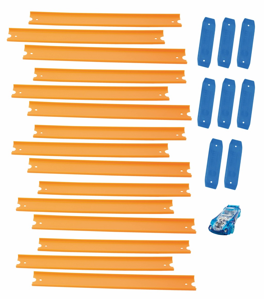 - Táto obrovská dráha Hot Wheels meria viac ako 4,5 metra a je prvá svojho druhu! Súčasťou balenia je jedno autíčko Hot Wheels, takže sa môžete hneď začať hrať. Balenie obsahuje 12 23 cm dielikov, 6 3 cm dielikov a 18 konektorov dráhy. Pošlite svoje autíčko Hot Wheels na dráhu a sledujte, ako sa rúti vpred. Alebo otestujte rýchlosť ostatných autíčok vo svojej zbierke a zistite, ktoré z nich je pripravené vyhrať preteky. Pripojte dráhu k ďalším pretekárskym dráham Hot Wheels pre ešte napínavejšie kúsky a zábavu!
