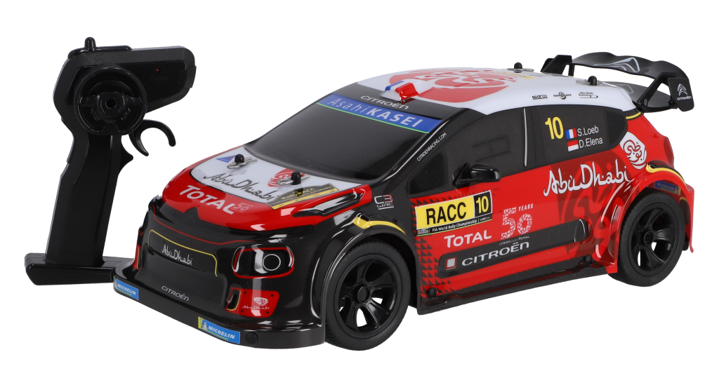 - Citroën WRC 1:10 R/C Car - Zažite vzrušenie z jazdy v rallye s rádiom riadeným autom Citroën 1:10 2.4G WRC! Toto parádne športové auto v mierke 1:10, inšpirované Citroënom C3 WRC Rally Catalunya 2018, je splneným snom mladých fanúšikov pretekov. Zažite rýchlosť a obratnosť skutočného súťažného auta. Vďaka odvážnemu dizajnu, funkčnému odpruženiu a gumovým pneumatikám ponúka tento rádiom riadený Citroën pôsobivý zážitok z jazdy. Auto je vybavené diaľkovým ovládaním 2,4 GHz, ktoré ti umožní presnú kontrolu nad každou zákrutou a skokom. s dosahom 25 metrov a mierkou 1:10 prináša toto auto vzrušenie z jazdy v rallye. Súčasťou balenia je nabíjací kábel USB.