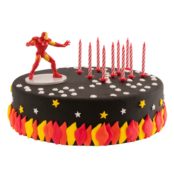 Dekorácia na tortu plastová figúrka Iron man a sviečky má veľkosť cca 7 cm