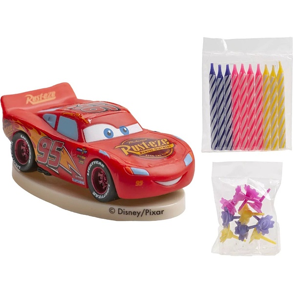 Sada 10 sviečok vrátane držiakov a parádnej figúrky Blesku McQueena je ideálna na narodeninovú oslavu vášho dieťaťa s témou Cars.