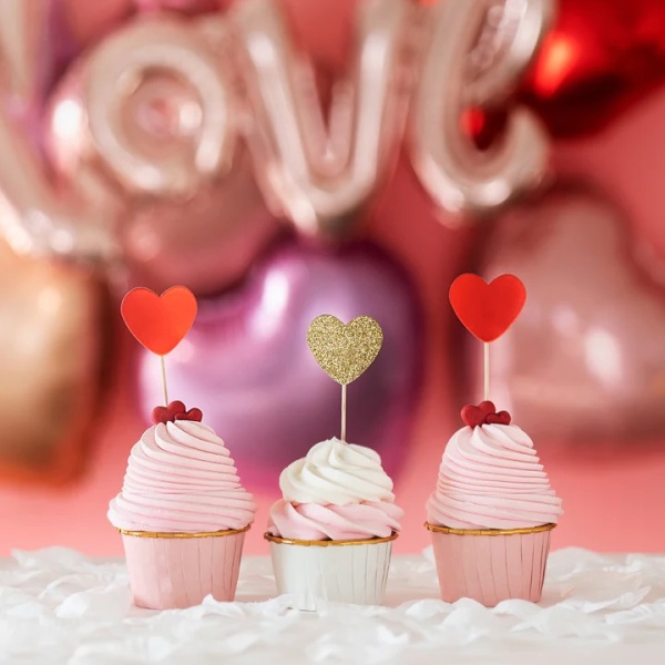 Zápichy na tortu alebo cupcakes v podobe červených srdiečok budú skvelým doplnkom na ich výzdobu.