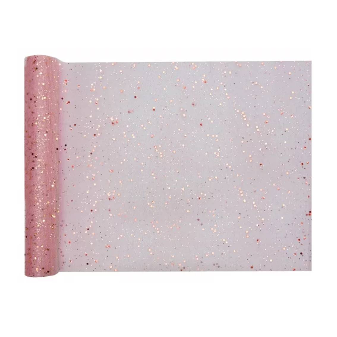 Organza - s glitrami ružová & nbsp; , & nbsp; je veľmi obľúbená textília, ľahko tvarovateľná, ľahko priesvitná s lesklým trblietavým efektom. Organzu môžete ľahko tvarovať a umiestňovať ako stredovú šerpu na slávnostné stoly. Ľahko z nej vytvoríte mašle a úväzy na stoličky alebo inú dekoráciu, kde sa predpokladá poddajnosť materiálu a elagantná ľahkosť.