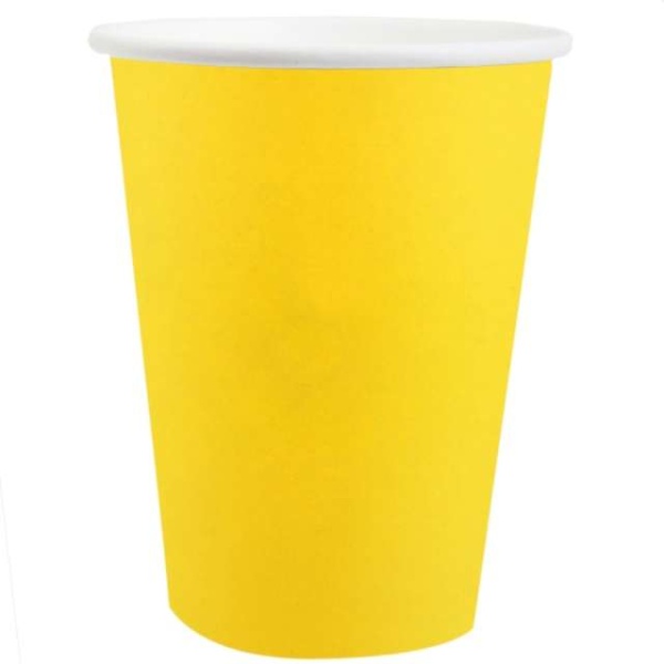 Jednorazové papierové tégliky z pevného kartónu v žltej farbe.