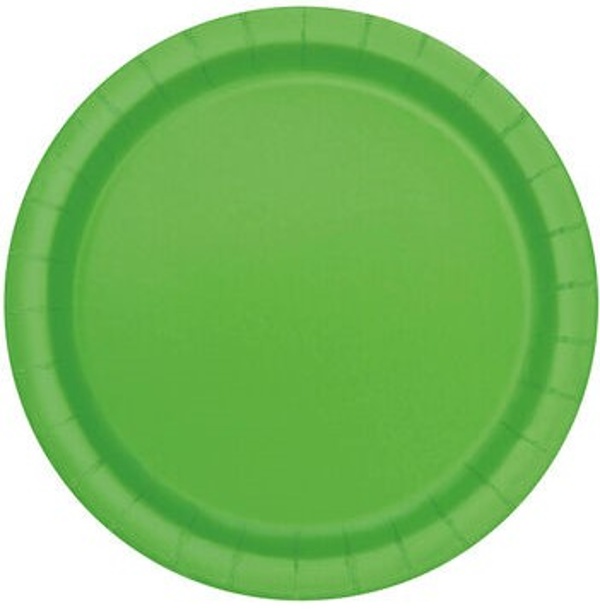 Jednofarebné papierové tanieriky okrúhleho tvaru v limetkovo zelenej farbe sú ideálne na podávanie