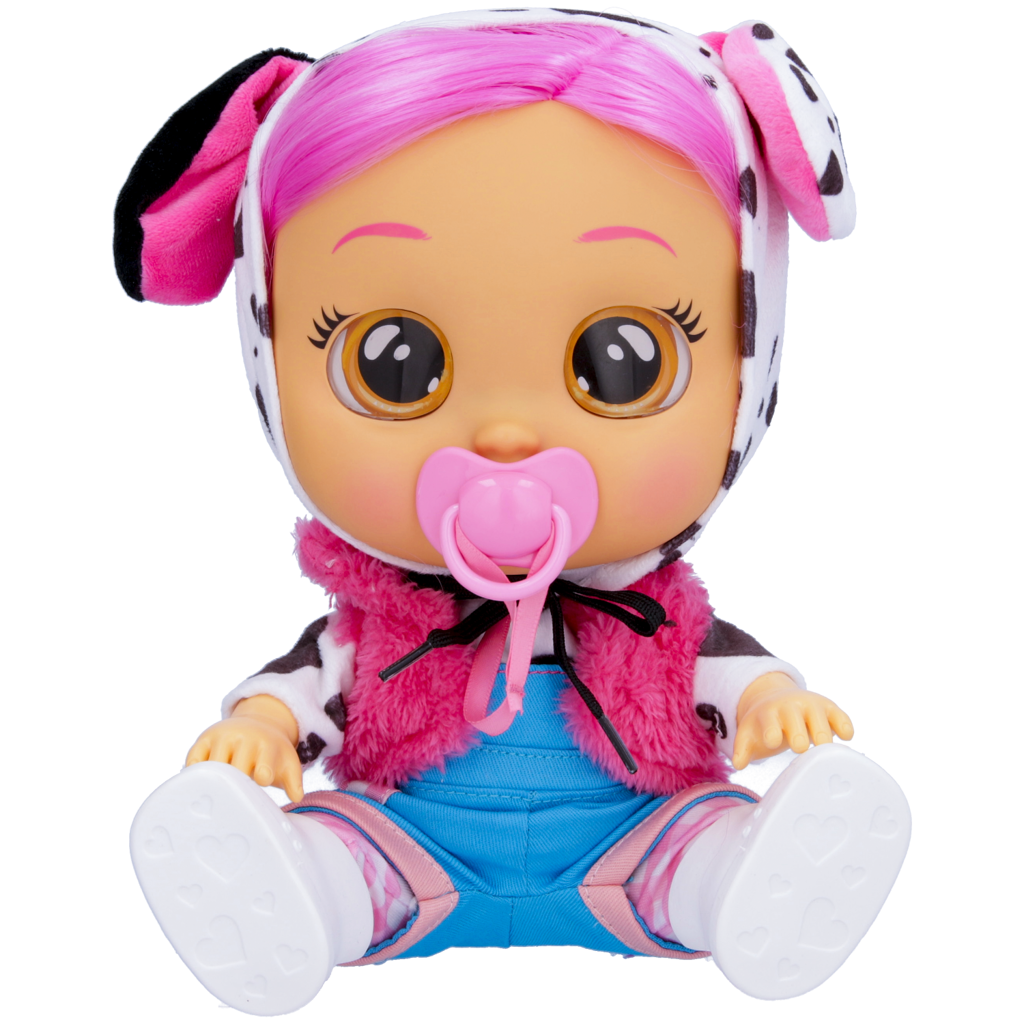 - Objavte úplne nový rad plačúcich bábik Cry Babies DRESSY. Má vlásky s korienkami, trblietavé oči a nosí roztomilý moderný outfit! Keď jej odoberiete cumlík, rozplače sa skutočnými slzami! Vráťte jej cumlík späť do úst alebo ju položte, aby prestala plakať. Vydávajú 11 realistických detských zvukov! Cry Babies DRESSY sa dodáva s transformovateľným rozkošným oblečkom, párom odnímateľných topánočiek a zodpovedajúcim cumlíkom. Ideálna plačúca bábika na zábavu a nápaditú hru. Odporúčaný vek od 18 mesiacov.