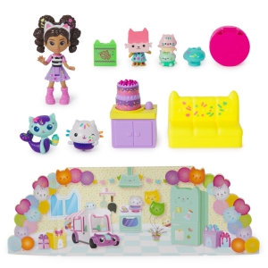 - Vstúpte do čarovného sveta Gabinho zakliateho domu so sadou Torta a jeho narodeninovým darčekom! Táto súprava figúrok obsahuje Gaby, Rybku, Tortu, Krabičku a Tortičkine sesternice, doplnky pre bábiky, ako je stolík s tortou, ktorý sa dá roztočiť stlačením tlačidla, a oveľa viac! Rozbaľte svoj balíček s prekvapením Čarovný domček, naskenujte QR kód vo vnútri a odomknite svoju špeciálnu odmenu v bezplatnej aplikácii Gaby's Magic House (k dispozícii pre iOS a Android). Hračky Gaby's Magic House pre dievčatá a chlapcov sú skvelými darčekmi pre všetky deti, ktoré sú fanúšikmi obľúbeného seriálu Netflix a rady sa hrajú s domčekmi pre bábiky. Poskytnite im nezabudnuteľný zážitok so svetom roztomilých figúrok, doplnkov a nábytku do čarovného domčeka, ktoré môžu ľubovoľne zbierať a skladať! Postavte im vlastný svet so základnými stavebnicami, ako je hracia kuchyňa alebo hudobná miestnosť, a množstvom zberateľských prvkov, ako je úžasná výletná loď, bazén s morskou pannou a úplne nová súprava Party Room - podkrovný kúzelný domček s vnútorným skateparkom a roztomilými balkónmi s minihračkami. Poskytujú uspokojivú zmyslovú hru a dajú sa bez problémov kombinovať s oboma verziami čarovného domu!