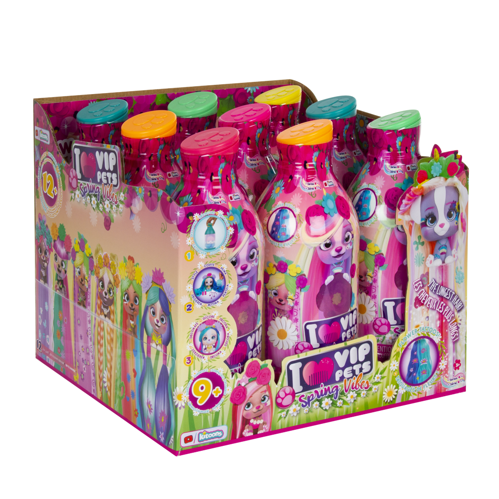 - Psy VIP Pets s jarnou tematikou s extra dlhou a voňavou srsťou. Opäť viac ako 12 psov vrátane 4 nových postavičiek do kolekcie. Balenie predstavuje kvetinový šampón a vo vnútri sa nachádza 9 prekvapení: 1 pes VIP Pets, 3 základné doplnky + 2 špeciálne doplnky (kvetinové tetovačky/značky) kadernícke kreslo a leták s nápadmi na účesy. Vzácny pes v tejto sérii obsahuje 1 doplnok navyše.