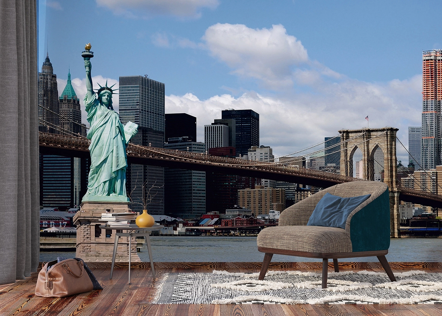 MojaParty Dekorácie a stolovanie Party doplnky a výzdoba Fototopaety AGdesign Vliesová fototapeta na stenu Brooklynský most a Socha slobody | 375 x 270 cm | FTNXXL 0426