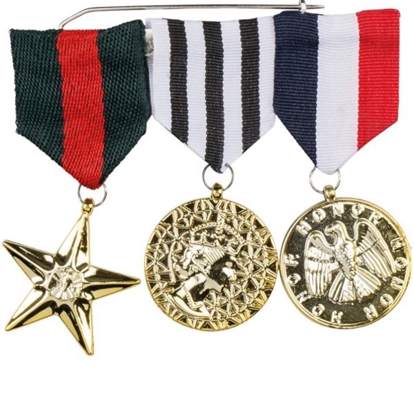 Tieto falošné vojenské medaily pripevnené na špendlíku, ktoré veľmi originálne doplnia vaše armádne prestrojenie
