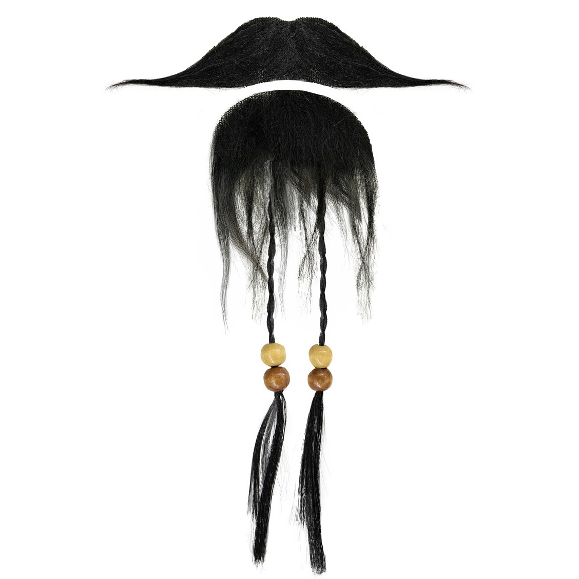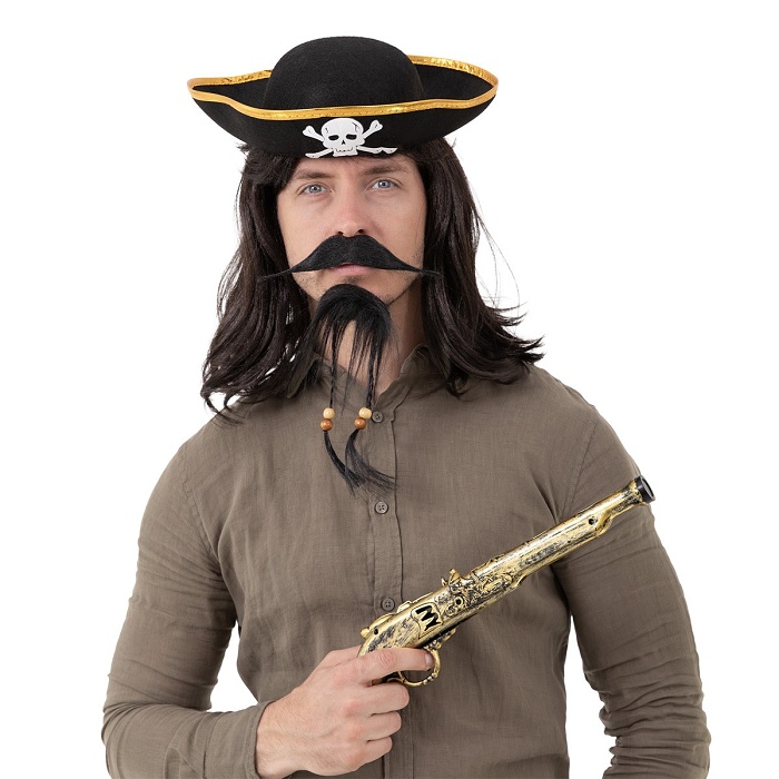 Pirátsky set - umelé fúzy s korálkami a fúzy v čiernej farbe.