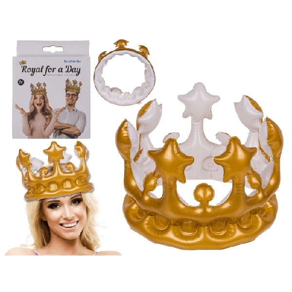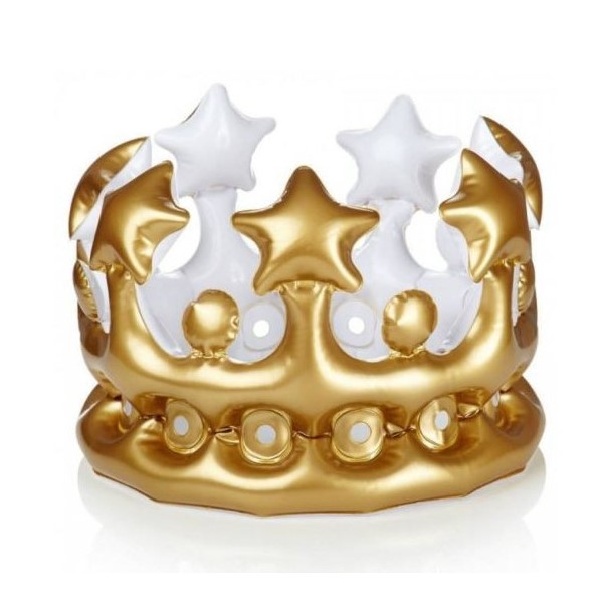 V tejto párty roztomilej nafukovacej zlatej korune sa budete cítiť ako kráľ alebo kráľovná. Použite ju ako súčasť kráľovského kostýmu, originálny darček, alebo vtipný doplnok na silvestrovskú párty s priateľmi.