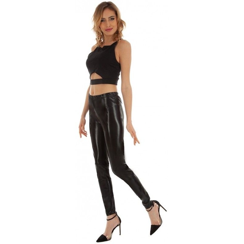 Luxusné dámske čierne lesklé legíny