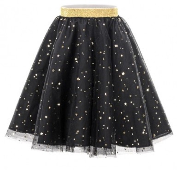 Čierna tylová sukňa so zlatými hviezdičkami.
