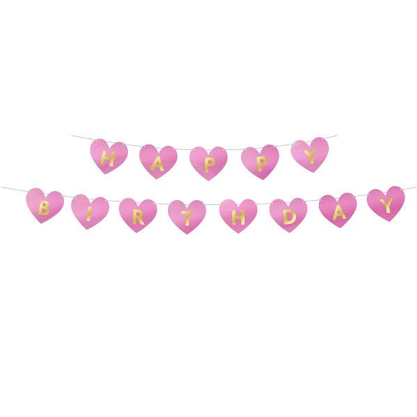 | Srdcový banner v ružovej farbe so zlatým nápisom Happy Birthday Krásny doplnok k dekoráciám na narodeninovú párty pre … |
