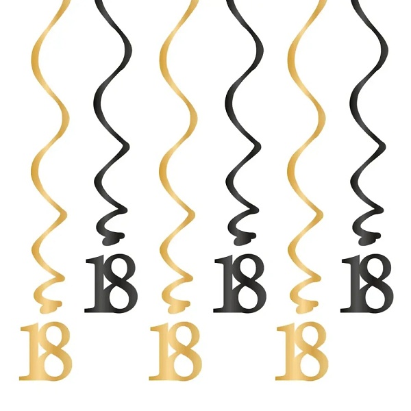 Tieto originálne špirály so vzorovanou kombináciou klasickej zlatej a čiernej farby sú dokonalým doplnkom vašej oslavy 18. narodenín.