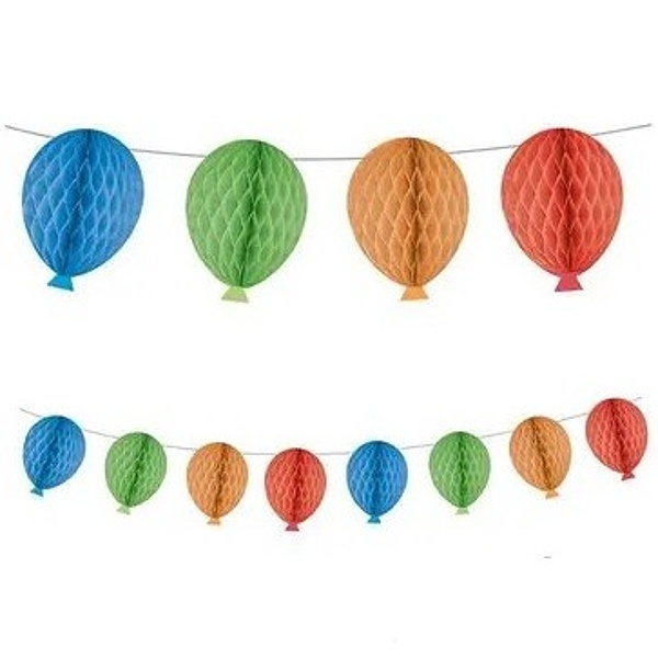 | Farebná závesná dekorácia, ktorá pripomína balónové dekorácie. Táto girlanda je vyrobená z hodvábneho voštinového papiera … |