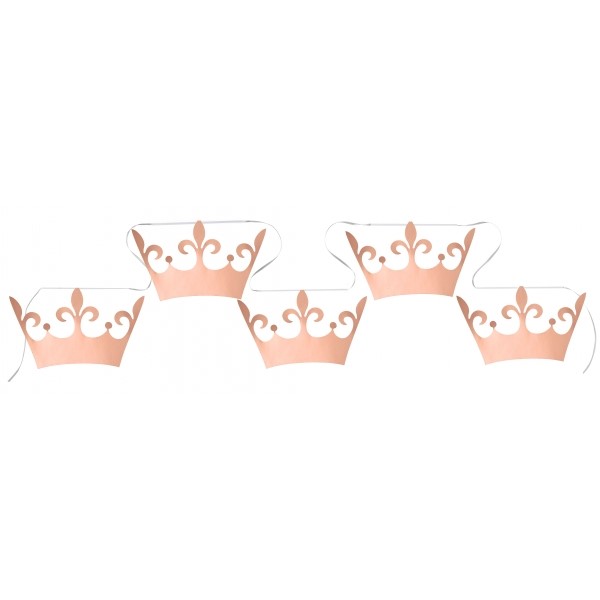 Závesná papierová dekorácia v podobe princeznovských koruniek vo farbe rose gold.
