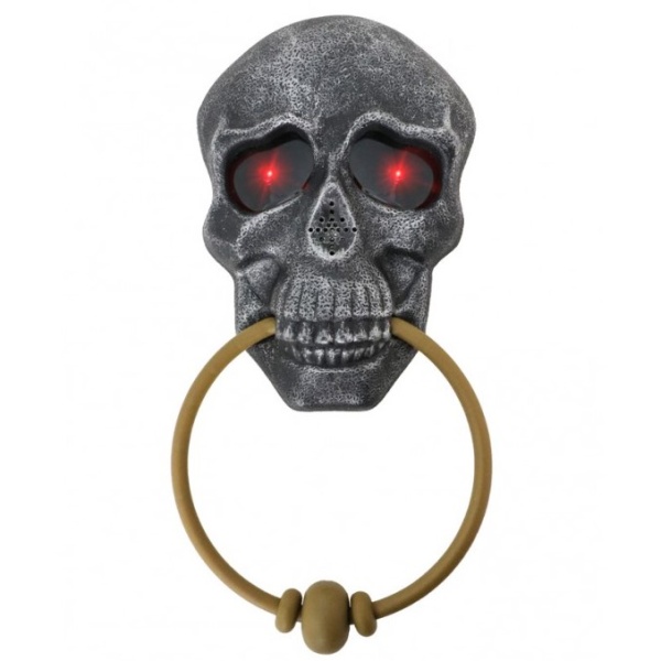 Ak chcete privítať na vašu halloweensku párty svojich hostí už pri vchodových dverách, určite si zakúpte toto klepadlo na dvere s lebkou a červenými očami. 3 batérie AAA sú súčasťou.