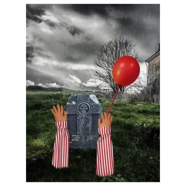 halloweensku párty, v tom prípade je táto strašidelná sada rekvizít na trávnik s motívom klauna ideálna.