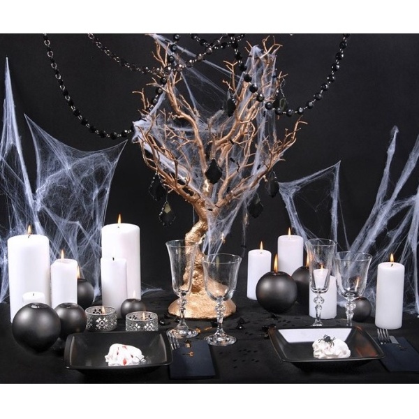 Dekoratívna pavučina Halloween s umelými pavúkmi v bielej farbe je originálna dekorácia na každú