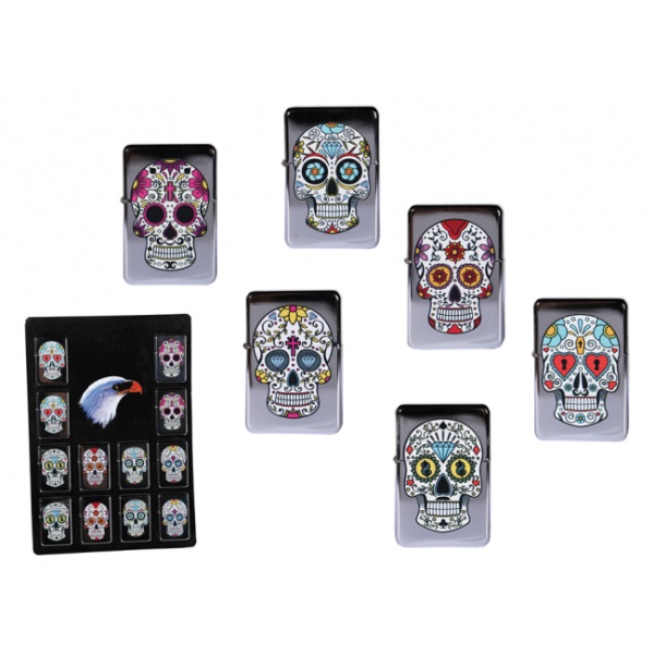 Lebky s motívom Dia de los Muertos, oslavované v Mexiku. Zapaľovač je veľmi kvalitne spracovaný.