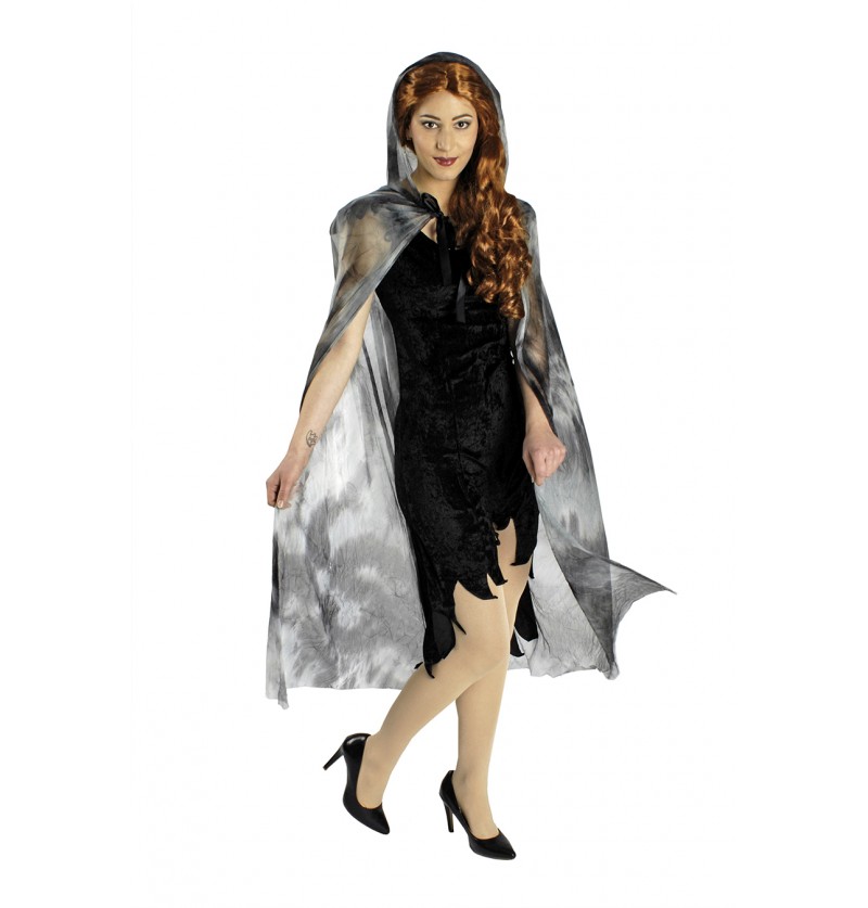 Tylový priehľadný plášť je vhodný pre čarodejnice, gotické upírky a doplnok kostýmu na halloweensku párty.
