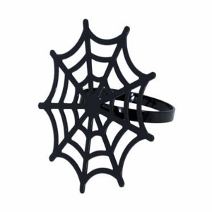 Pavučinový čierny držiak na servítky je ten pravý doplnok na výzdobu stola na gotickú, čarodejnícku alebo halloweensku párty.