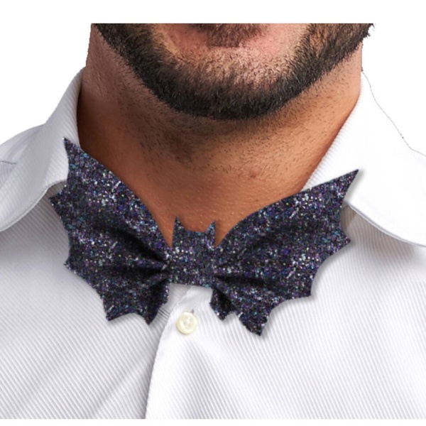 Originálny pánsky motýlik v tvare netopiera s glitrami.
