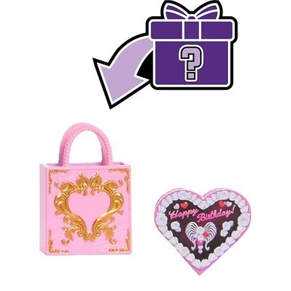 Bábika prichádza v ružových a červených šatách s tematickými doplnkami ako je pozvánka, balónik, darček a ďalšie.