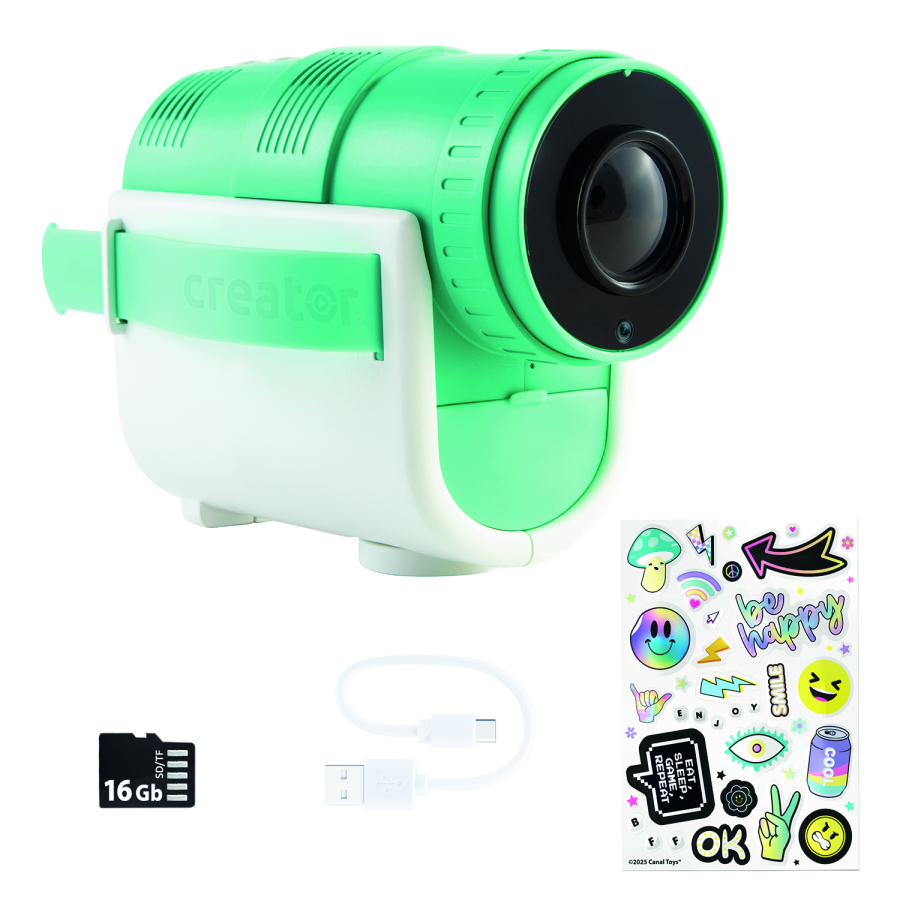 Staňte sa tvorcom vlastných filmov a fotografií s týmto novým produktom. Natáčajte, premietajte alebo zdieľajte obsah iného zariadenia na stene, to je creator Camera 3v1. Táto interaktívna detská kamera, určená pre malých tvorcov vo veku od 8 rokov, ponúka trojicu zábavných funkcií v jednom kompaktnom zariadení. Vďaka displeju LCD, 16 GB pamäťovej karte v balení a jednoduchému ovládaniu je táto kamera dokonalým nástrojom na prvé kroky do sveta videa a digitálnej tvorby. Navyše môžete pripojiť telefón alebo tablet a premietať svoj obľúbený obsah kedykoľvek a kdekoľvek! Kamera s projektorom, kábel USB-C, 16GB karta microSD, používateľská príručka.