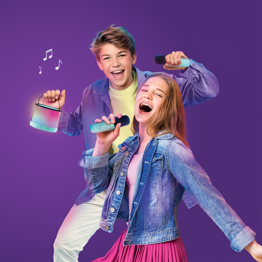 Túto karaoke stanicu si môžete vziať kamkoľvek so sebou a zažiť spontánne spevácke chvíle s rodinou alebo priateľmi. Zabudované 4 hlasové efekty a LED svetlá vytvárajú skvelú atmosféru večierka. Dobíjateľné batérie reproduktora a mikrofónu zabezpečujú hodiny nepretržitého spievania, takže zábava nikdy nekončí.
