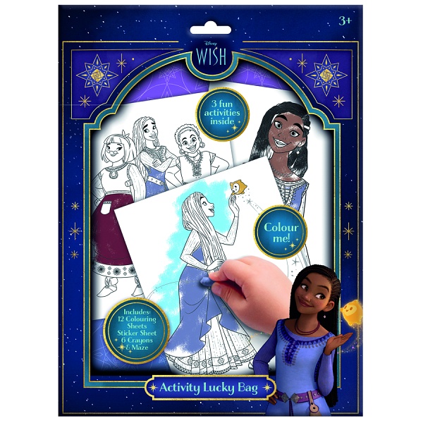 | Omaľovánky s nálepkami Disney Wish Balenie obsahuje 12 listov na vyfarbovanie, list so samolepkami, 6 voskoviek a … |