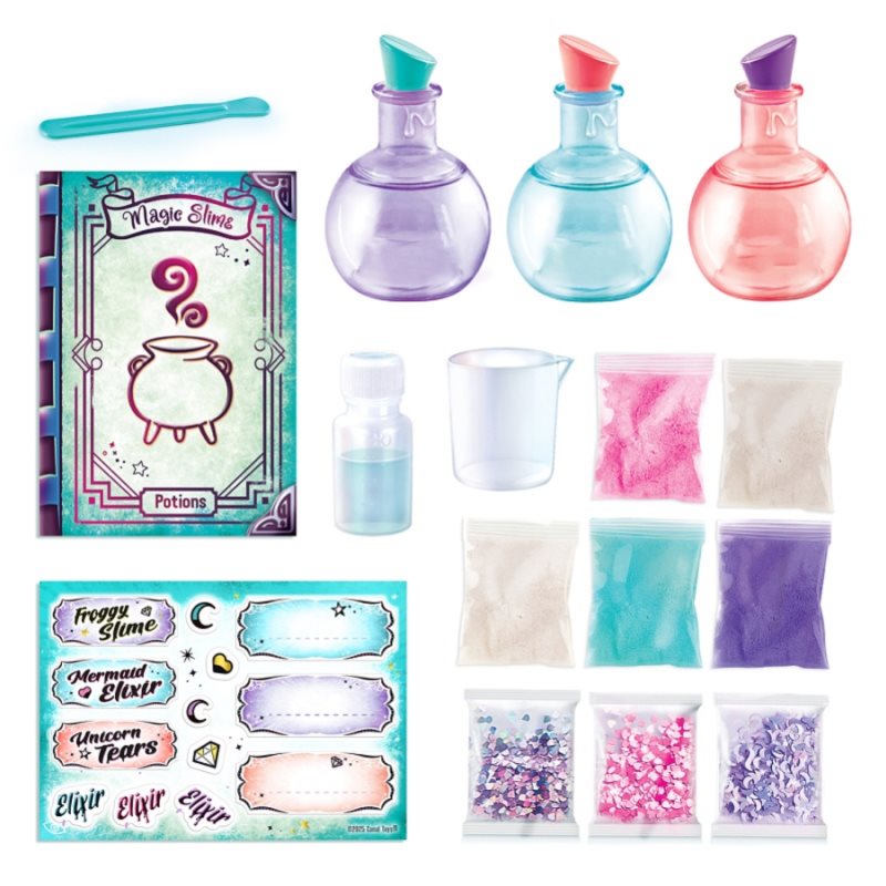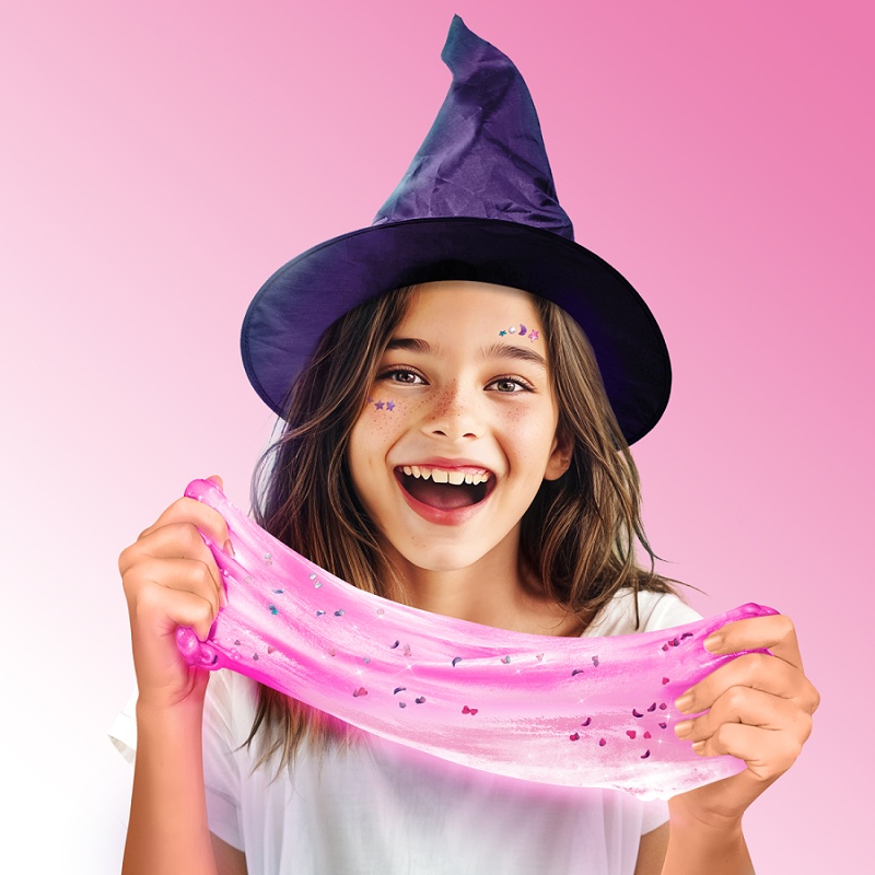V balení nájdete návody a recepty na jednotlivé elixíry zo slizu. Miešajte prášky, vodu, trblietky - ako skutočný kúzelník alebo alchymista! Stláčajte, stláčajte, hrajte sa a bavte sa.