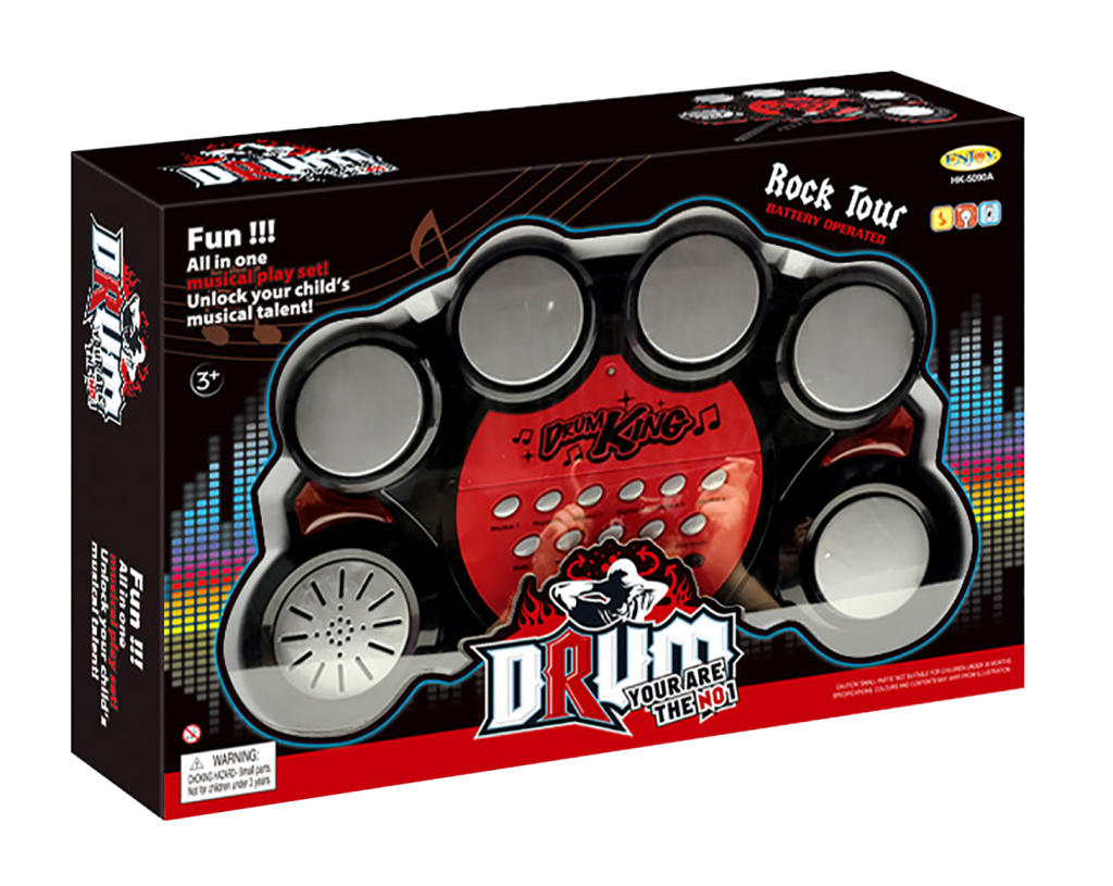 Snívate o veľkom pódiu, kde budete bubnovať do rytmu? Niekto už od detstva. veľa zábavy! Objavte hudobný talent svojho dieťaťa! 6 bicích úderov, 5 demo skladieb, 2 rôzne režimy, 2 blikajúce svetlá Ako sa hrá? Stlačte tlačidlo DEMO MUSIC.