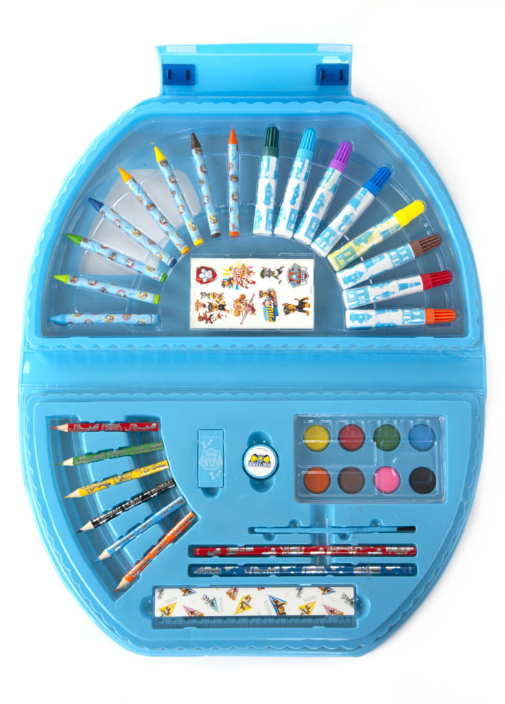 Maľovanie kovového kufríka Tlapková Patrola - skvelá sada na kreatívnu zábavu uspokojí všetkých malých fanúšikov Tlapkovej Patroly. Obsahuje fixky, voskovky, pastelky, vodové farby, obyčajné ceruzky, pravítko, gumu, orezávač, štetec a samolepky.