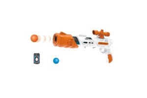- Užite si veľa zábavy. Pištoľ kohútik a strieľať. Rýchlejšie vystrelí gule! 1, nabite loptičku do pištole 2, potiahnite dozadu a zatlačte 3, vystreľte penovú loptičku.