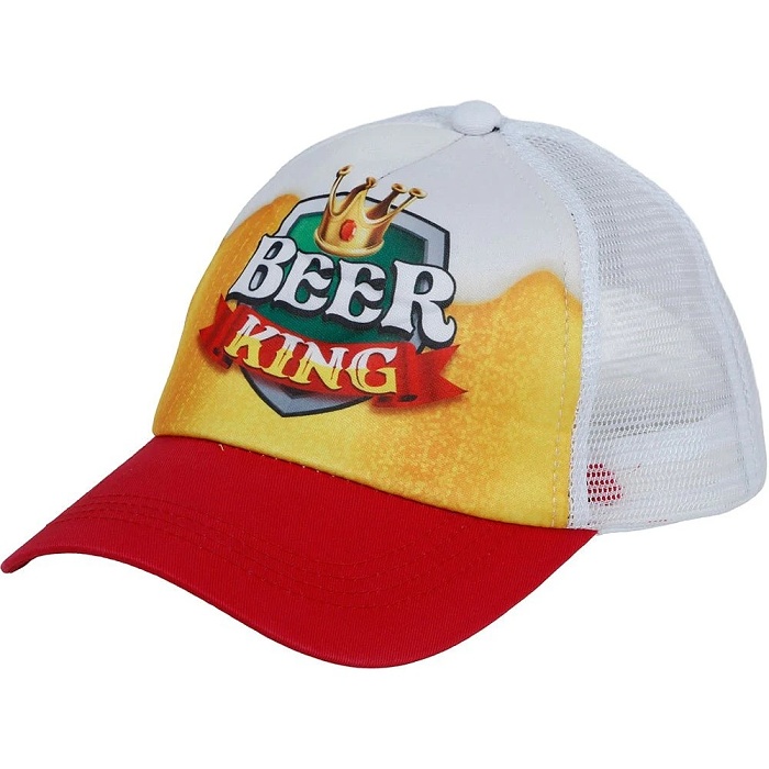 Táto štýlová čiapka s nápisom "Beer King" a kráľovskou korunou je dokonalým doplnkom na festivaly, grilovačky a rozlúčky so slobodou.
