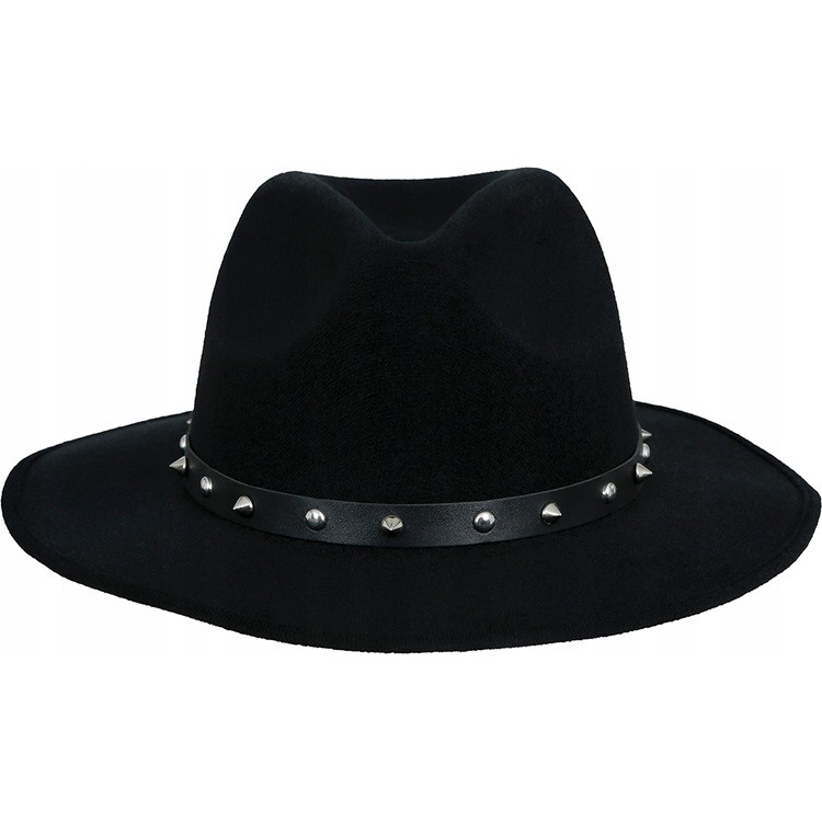Tento čierny kovbojský klobúk je vyrobený z plsti, zdobený striebornými cvočkami a je nevyhnutnou súčasťou každého kovbojského oblečenia.