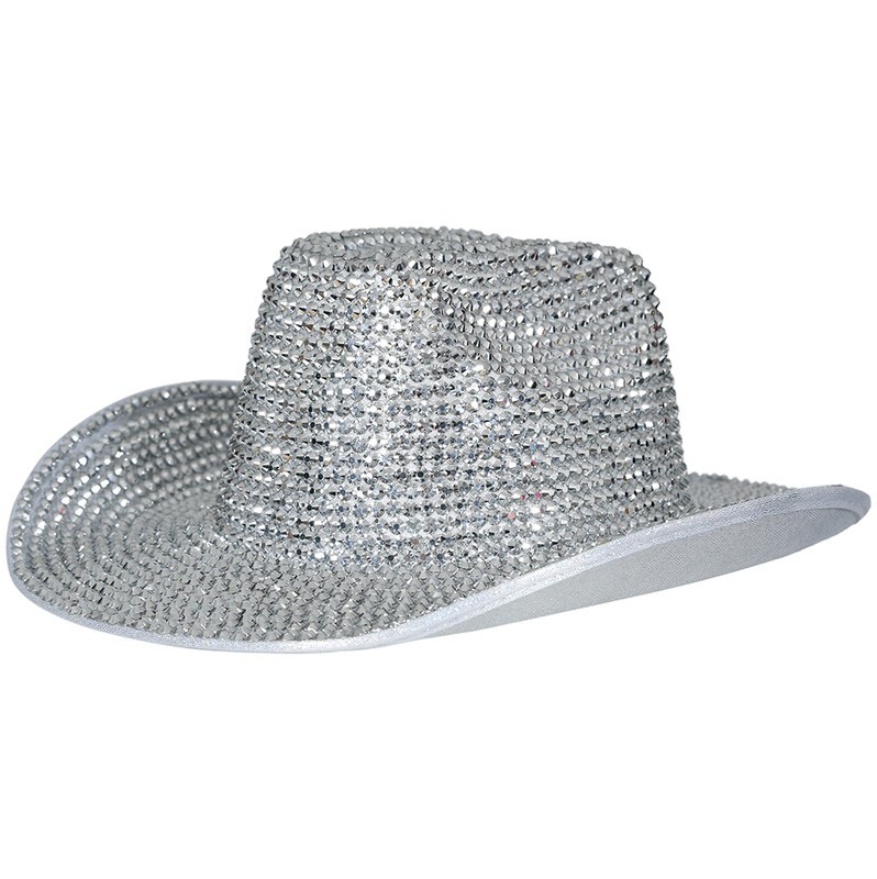 Strieborný dámsky kovbojský klobúk je stelesnením elegancie a štýlu na každú príležitosť. Jeho jedinečný dizajn obohatený o lesklý efekt mu dodáva jedinečný charakter, ktorý ľahko upúta pozornosť.