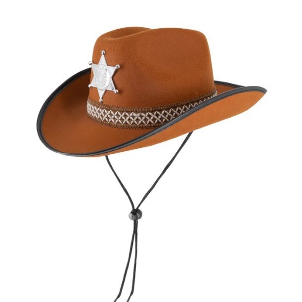 Hnedý kovbojský klobúk so šerifskou hviezdou