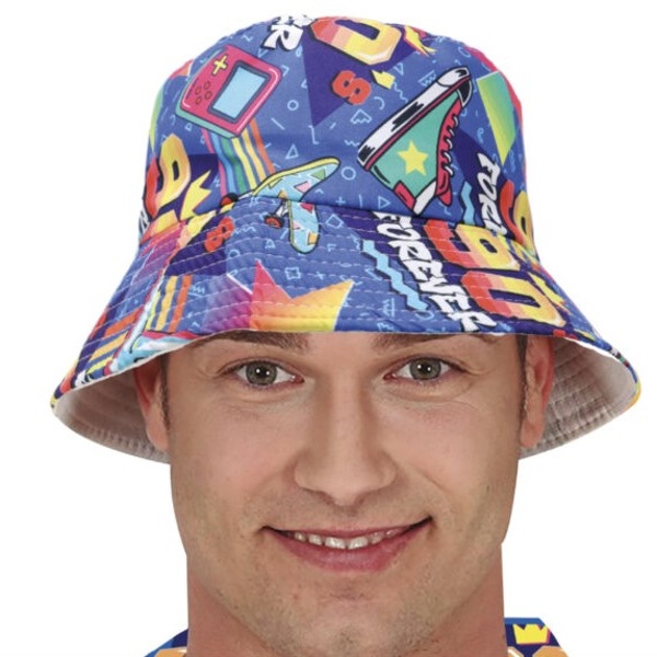 Retro slušivý klobúk 90. roky modrej farby s farebnou potlačou je veľmi vhodný na disco alebo retro párty. Klobúk je univerzálnej veľkosti, vhodný pre mužov aj ženy. Avšak vďaka jeho viacfarebnému designu a obojstranným funkciám sa tento pekný klobúk určite stane vašim obľúbeným doplnkom pre každú príležitosť.