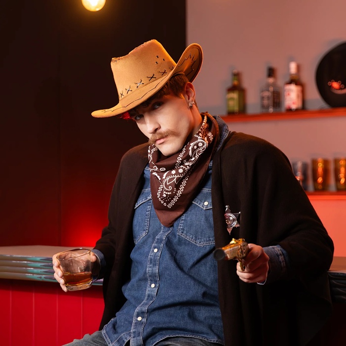 K tomuto klobúku si môžete kúpiť aj štýlové fúzy, šerifskú hviezdu a ďalšie neokázalé kovbojské doplnky.