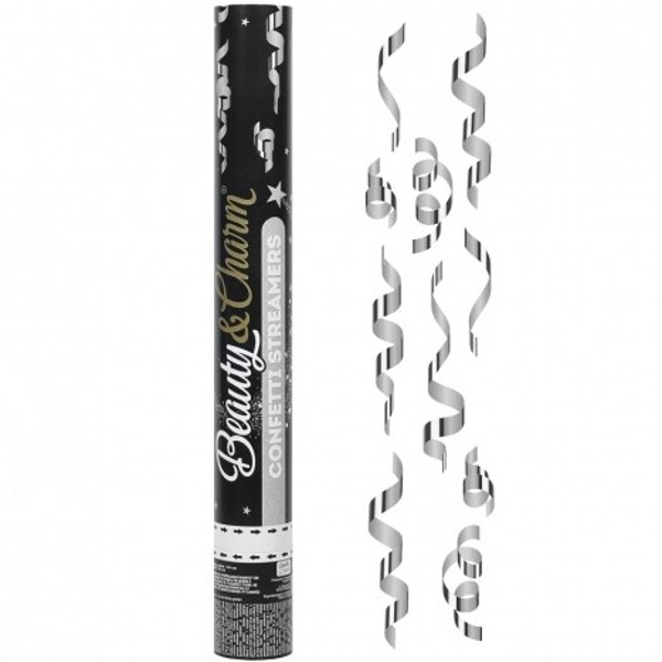 a rôzne záverečné defilé. Z tuby vylietajú strieborné fóliové prúžky. Konfety neobsahujú pyrotechniku.