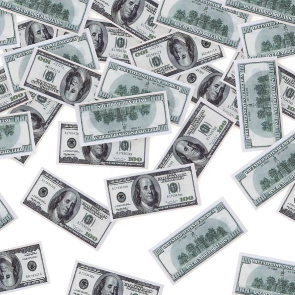 Peniaze všade, kam sa pozriete. Konfety v podobe imitácií eurobankoviek.