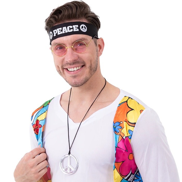 | Originálna 3-dielna súprava Hippie Skvelý doplnok ku kostýmu hippies. Sada obsahuje: čiernu čelenku so znakom mieru a … |