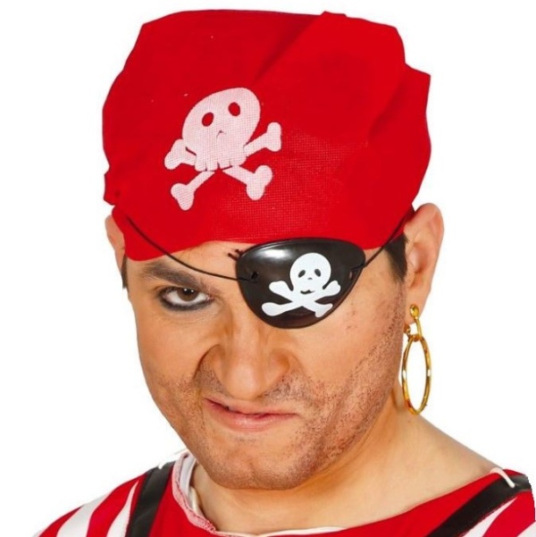 Žiadny pirát sa nezaobíde bez týchto dôležitých doplnkov, ako je šatka s lebkou so skríženými hnátmi, čiernej pásky cez oko a zlatej náušnice.