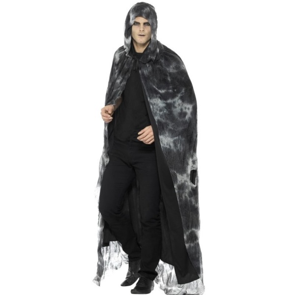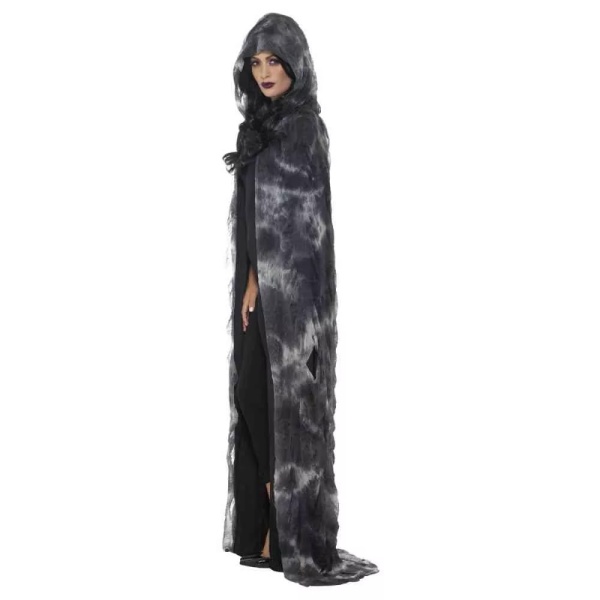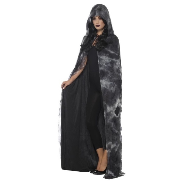 Dlhý batikovaný jemný plášť sa hodí ako doplnok k čarodejníckemu alebo halloweenskému kostýmu. Plášť s kapucňou je tiež neodmysliteľnou súčasťou kostýmu černokňažníka, upíra alebo smrtky. Zaväzuje sa pomocou šnúrok pod krkom.