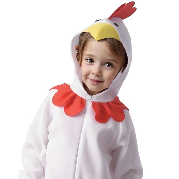Skladá sa z bieleho overalu s kapucňou v tvare hlavy sliepky a vrecka v tvare roztomilého kuriatka. Celé to pôsobí veľmi veselo a vaša malá ratolesť bude mať z tohto oblečenia určite radosť.