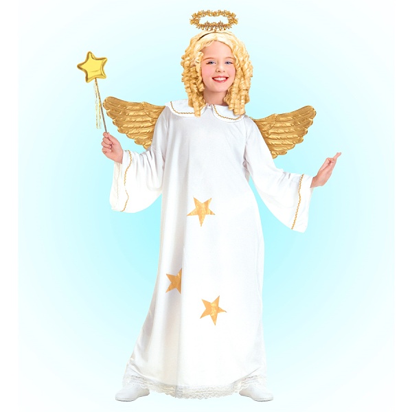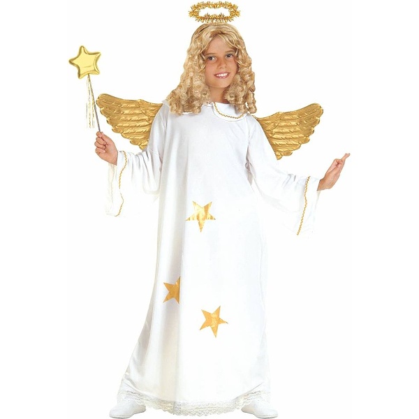 Detský kostým Anjel so svätožiarou Súprava obsahuje biele šaty so zlatými hviezdičkami a svätožiarou. 100% …